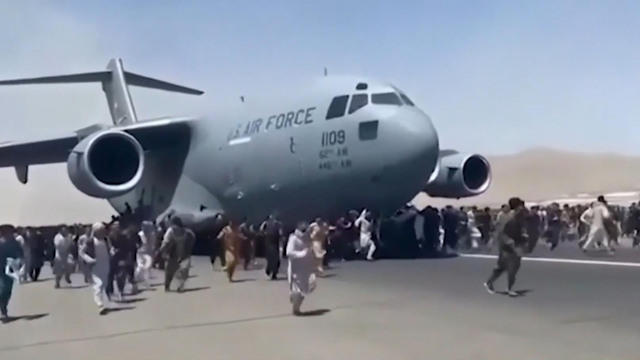 In videos uploaded Sunday night terrified people are seen trying to board airplanes to get out of Afghanistan by any means possible underscoring the horrors they are sure to face if they. Videos shared widely on social media on Monday showed hundreds of people running alongside a US military jet as it prepared to depart Kabul airport. One video taken by an Afghan journalist on Monday showed crowds running to.