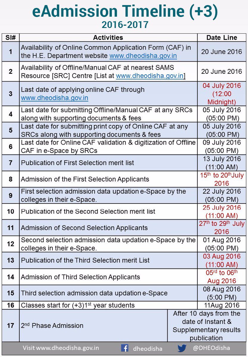 Sams Odisha Auf Twitter Eadmission Timeline For 3 Courses Is Out Online Cafs To Be Available From 20 June Visit Https T Co Abhzqha9mn